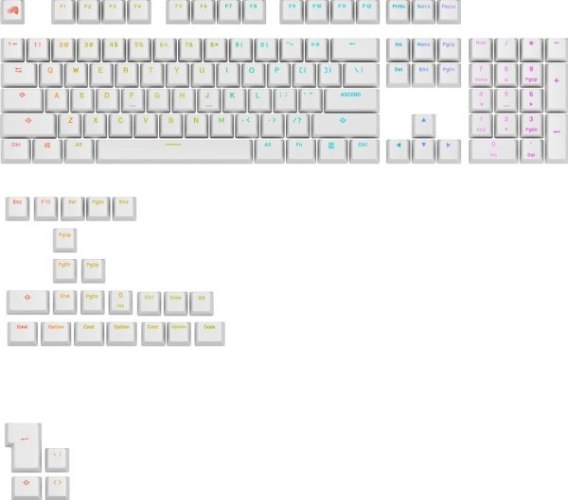 • Glorious Podświetlane GPBT, układ ANSI (USA), PBT, Dye-Sub - biały