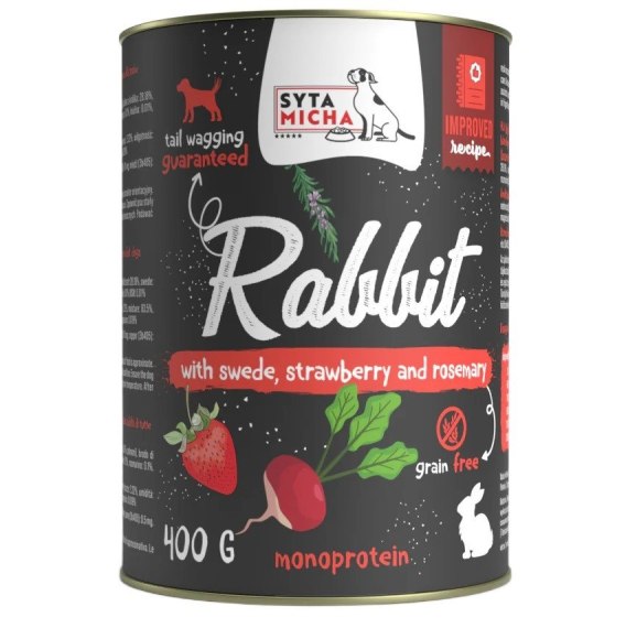 SYTA MICHA królik z brukwią i truskawką mokra karma dla psa 400g
